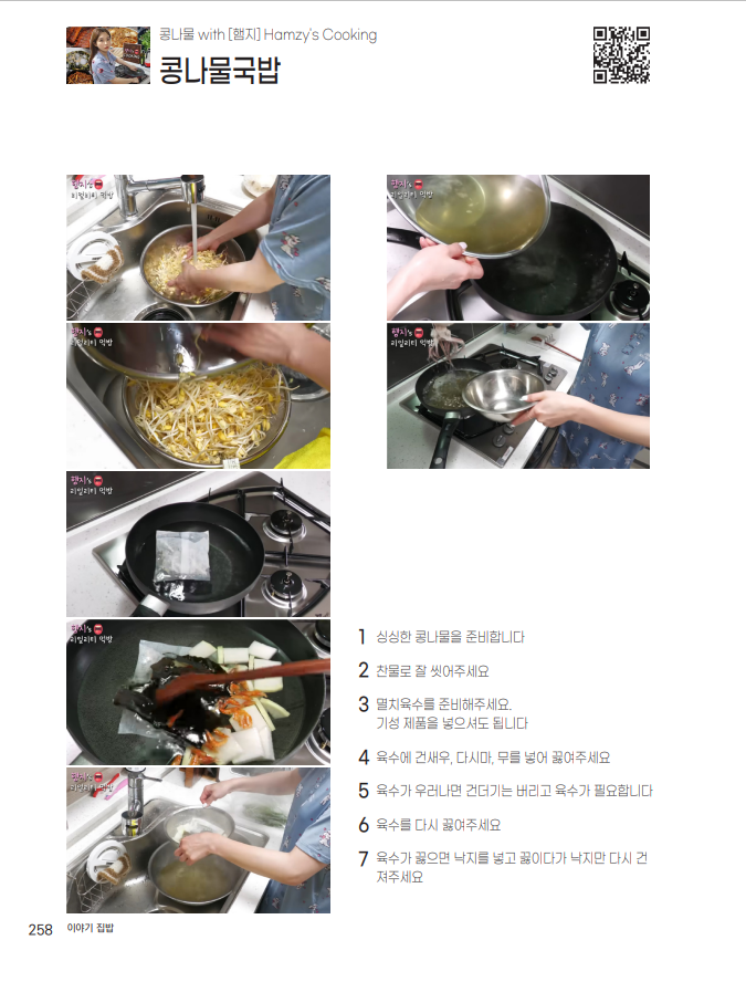 콩나물국밥 요리는 이 책에서 햄지 님의 요리영상으로 함께 합니다.
