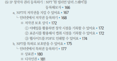 이러한 문제는 NFT 시장이 확장하면서 필연적으로 생기는 것들이라고 보이는데요, 시중에 출간된 NFT 관련 도서들중에는 [돈 버는 NFT 처음부터 제대로 만들고 판매하기] 책에서 저작권, 상표권, 디자인권에 대해 문제제기를 하고 해결방법을 제시한 것을 확인할 수 있습니다.