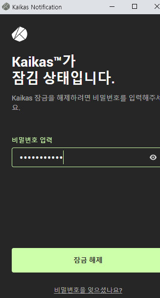 ‘카이카스’를 누르면 비밀번호 입력 창이 나타납니다.