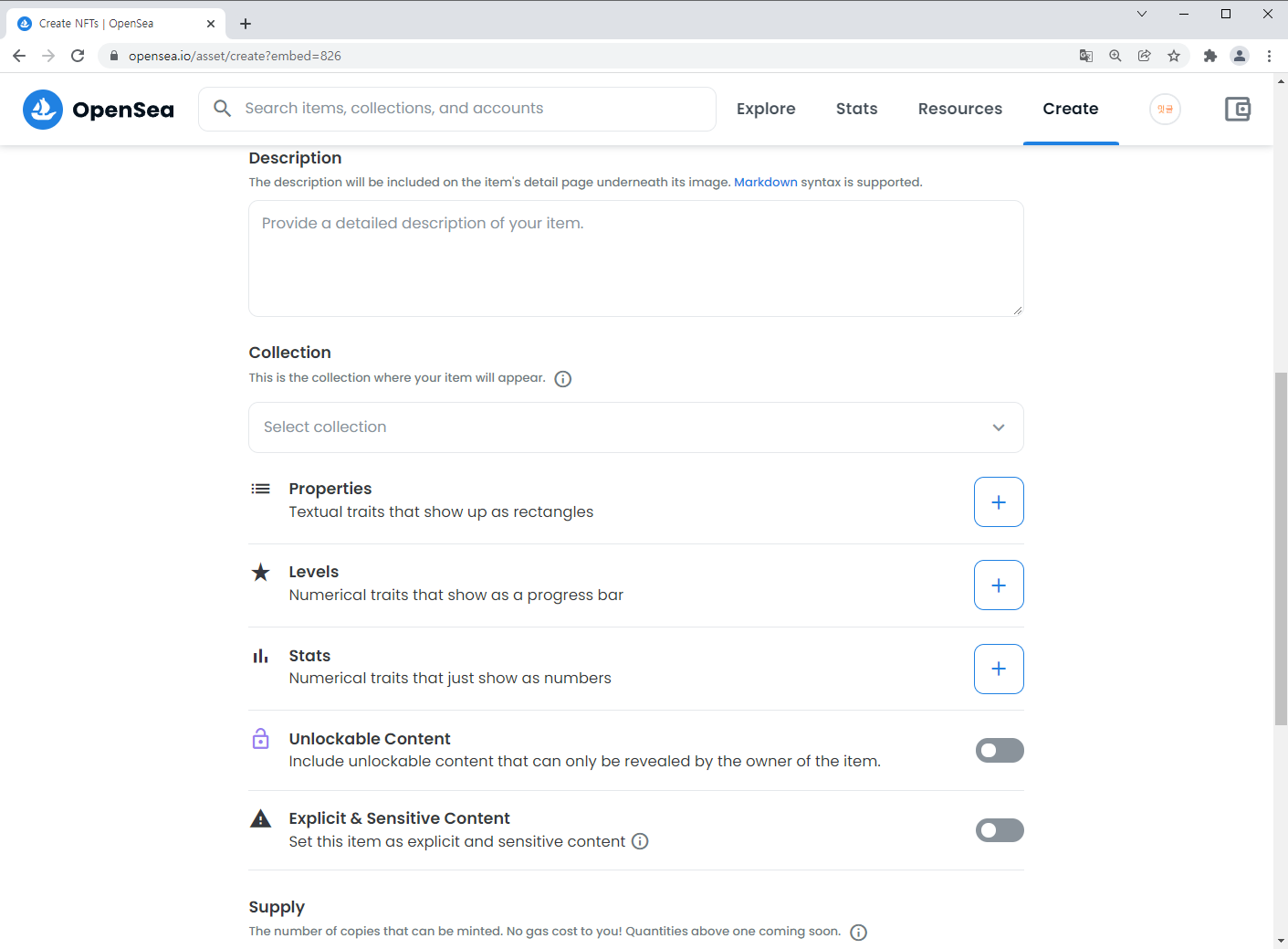 그리고 오픈씨에서 직접 NFT로 발행할 수도 있습니다.