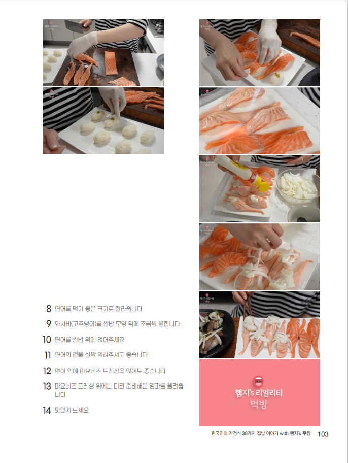유튜브 천만명 구독자로 유명한 세계 최고 먹방 크리에이터 햄지의 연어초밥 요리영상을 확인해보세요.